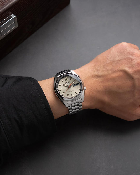 Seiko 5 Sports SRPK31 – Automatico 38mm, Quadrante Ivory, Acciaio