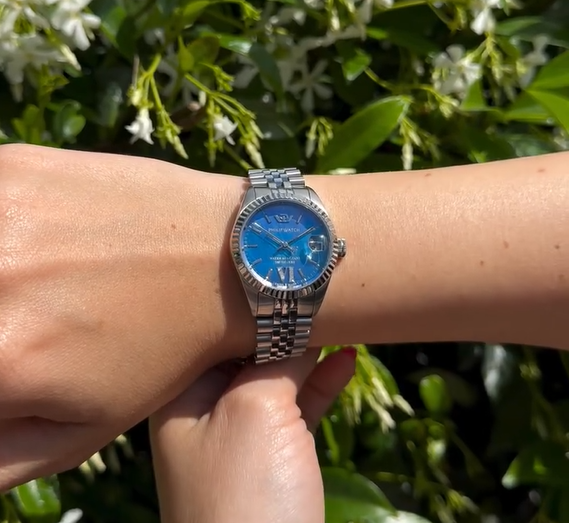 Il Philip Watch Caribe 31mm 3H w/ Diamonds si distingue per la sua cassa in acciaio da 31 mm, impreziosita da una lunetta con diamanti incastonati, che dona un tocco di luce e raffinatezza. Il quadrante essenziale e armonioso, unito al bracciale in acciaio, completa un look elegante e senza tempo.