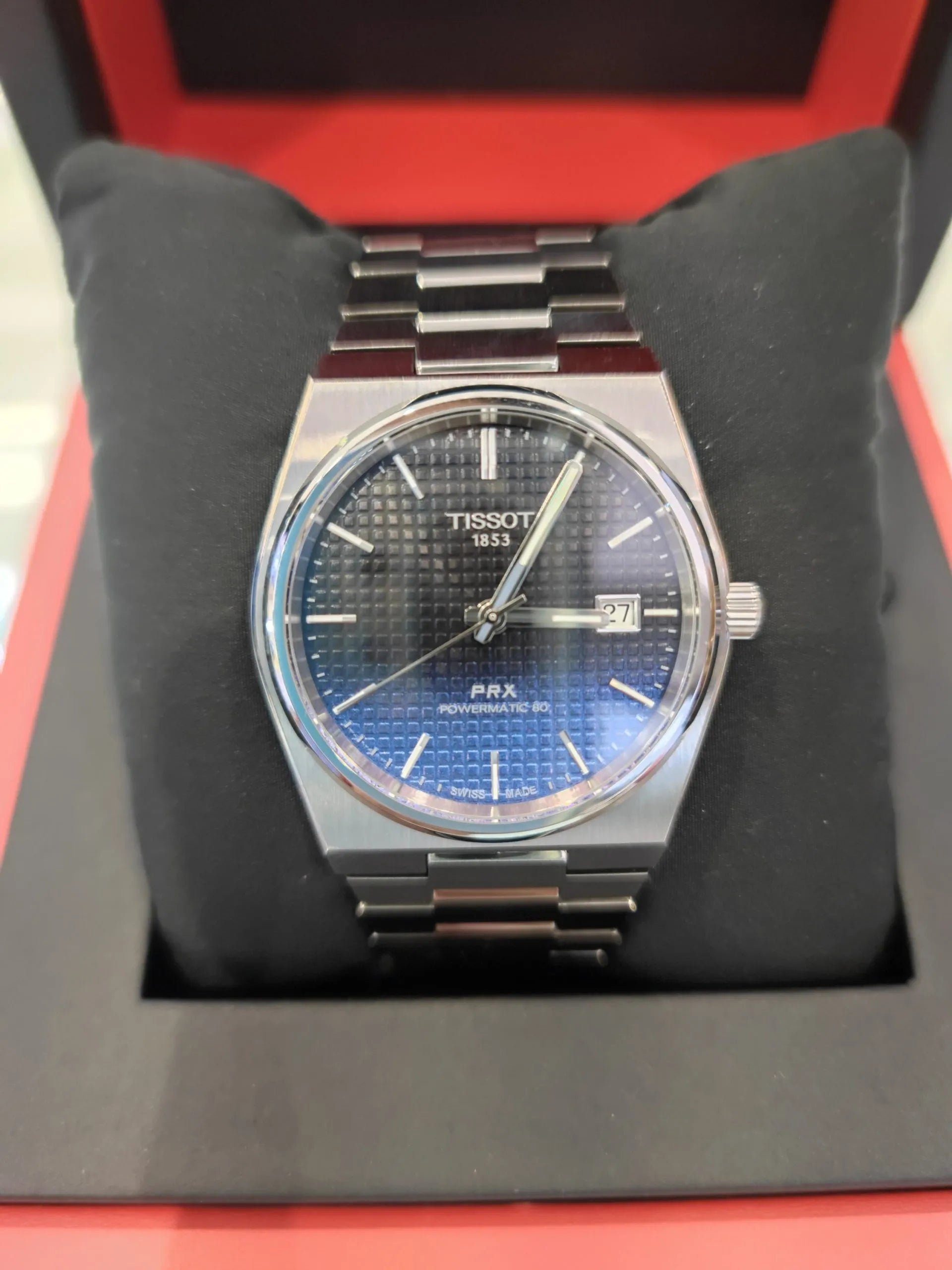 Un’icona di stile che richiama l’eleganza vintage degli anni ’70 con un carattere deciso. Il Tissot PRX 35mm si distingue per la sua cassa in acciaio integrata e il quadrante verde scuro soleil, capace di esaltare ogni look con un tocco sofisticato e originale.