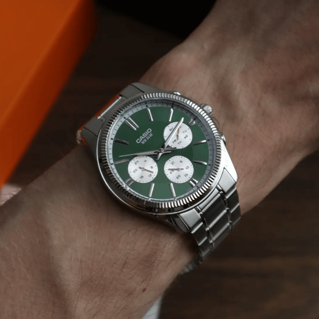 Casio MTP- 1375D -3A – Distinctive Style with Green Dial and Daily Functions