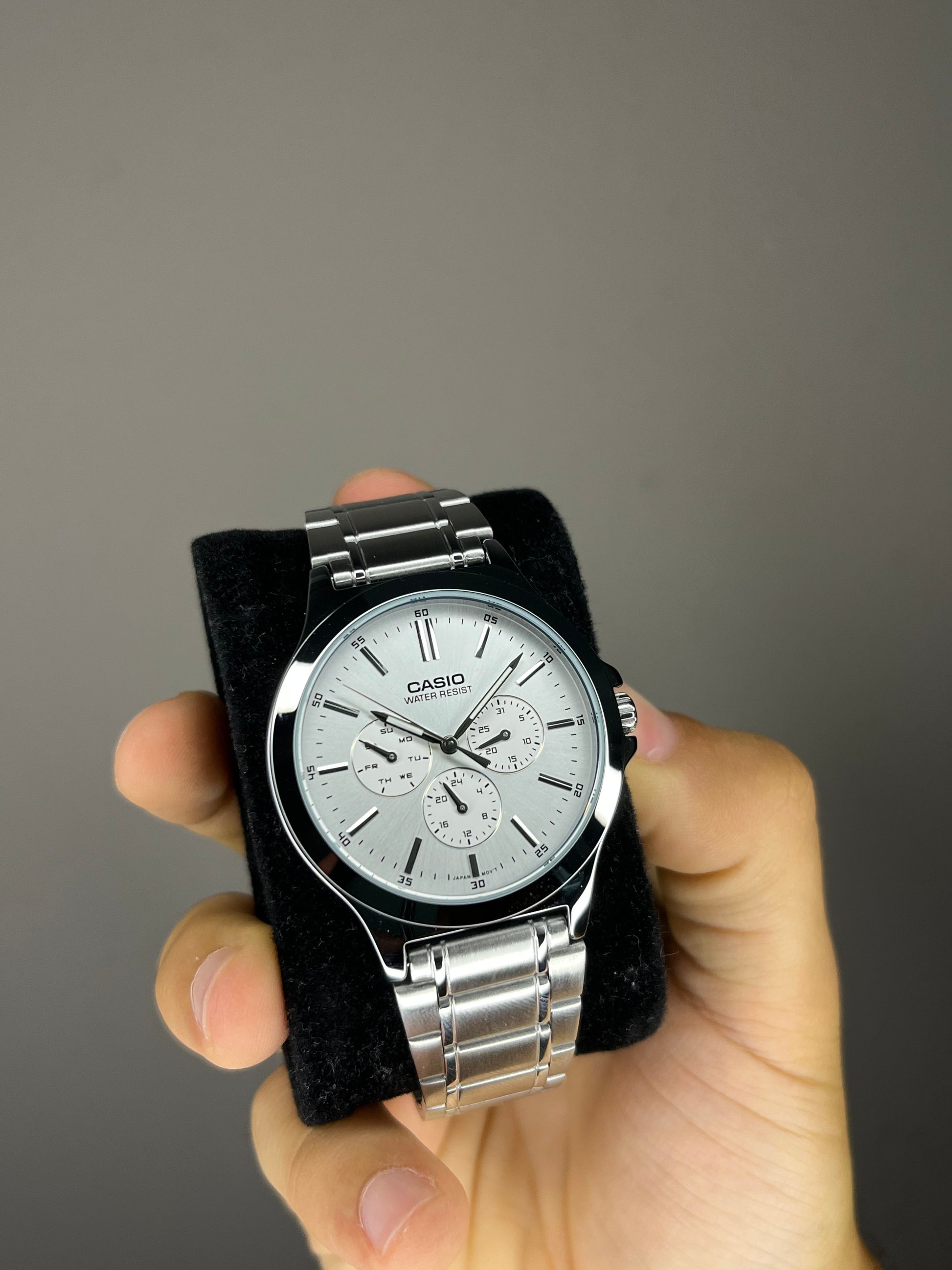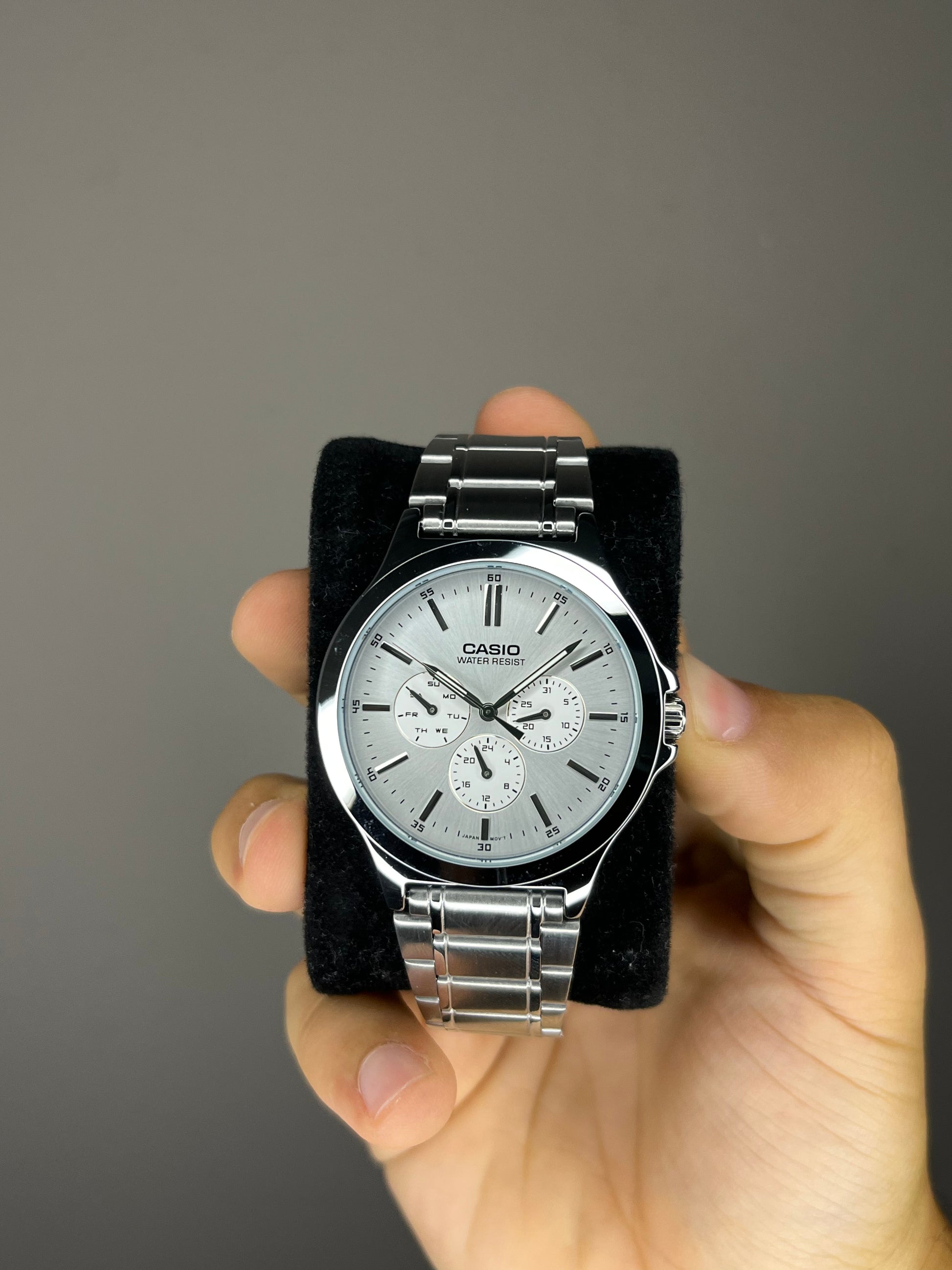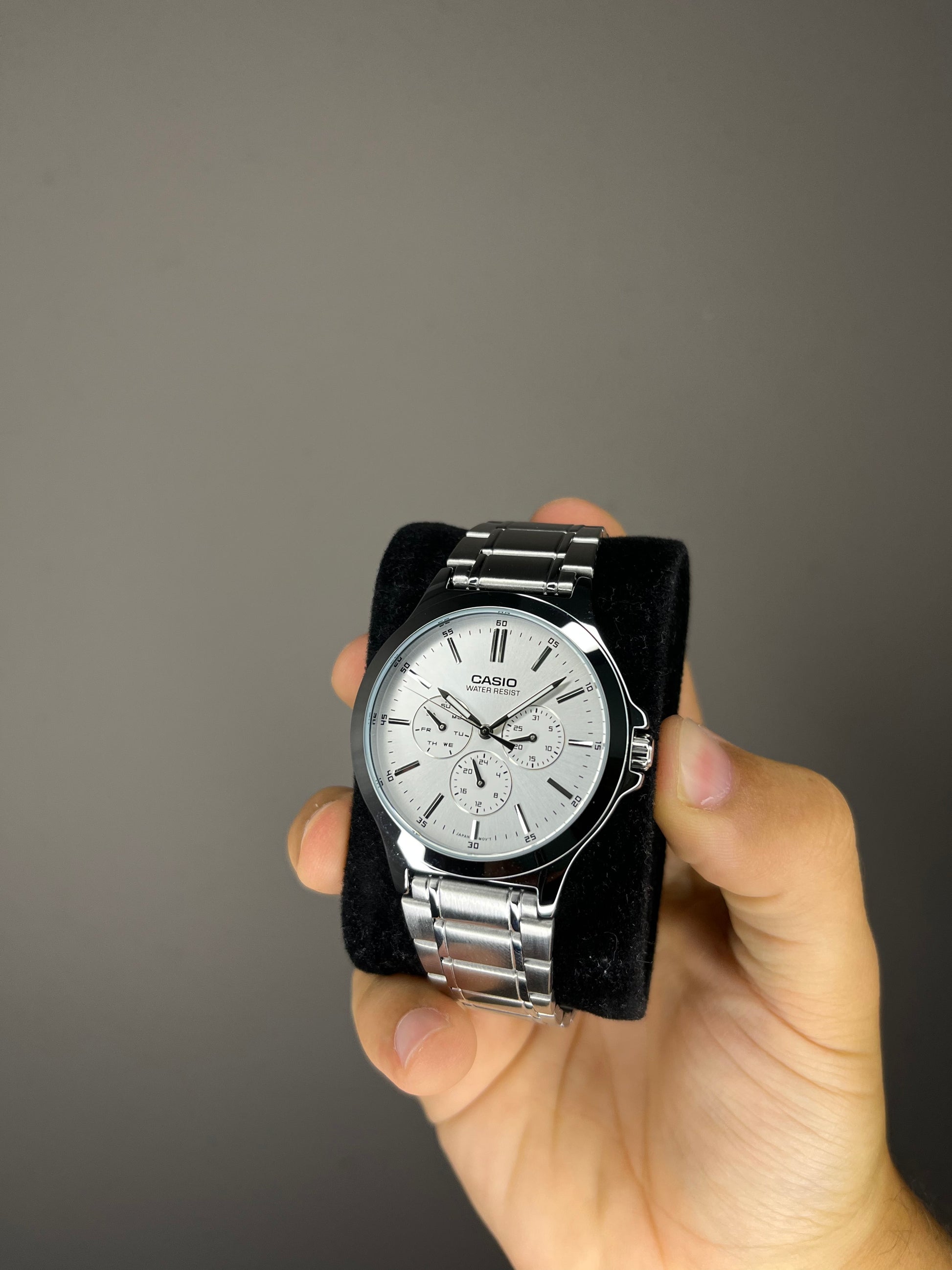 The Casio MTP-V300-7A is the perfect watch for those seeking a balance between minimalist style and functionality. A versatile accessory that easily matches any outfit.
