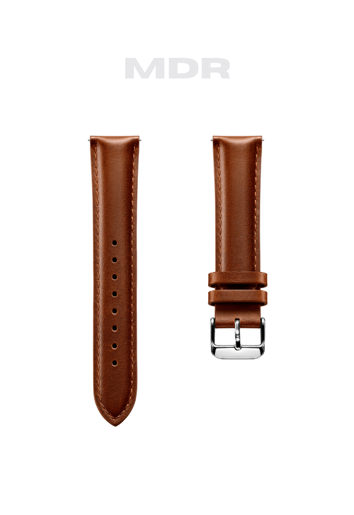 An accessory designed to enhance any watch. This smooth light brown genuine leather strap combines comfort , style and durability . The brown , tone - on - tone stitching maintains a clean and refined look , while the polished steel buckle completes the design with a modern and durable touch .