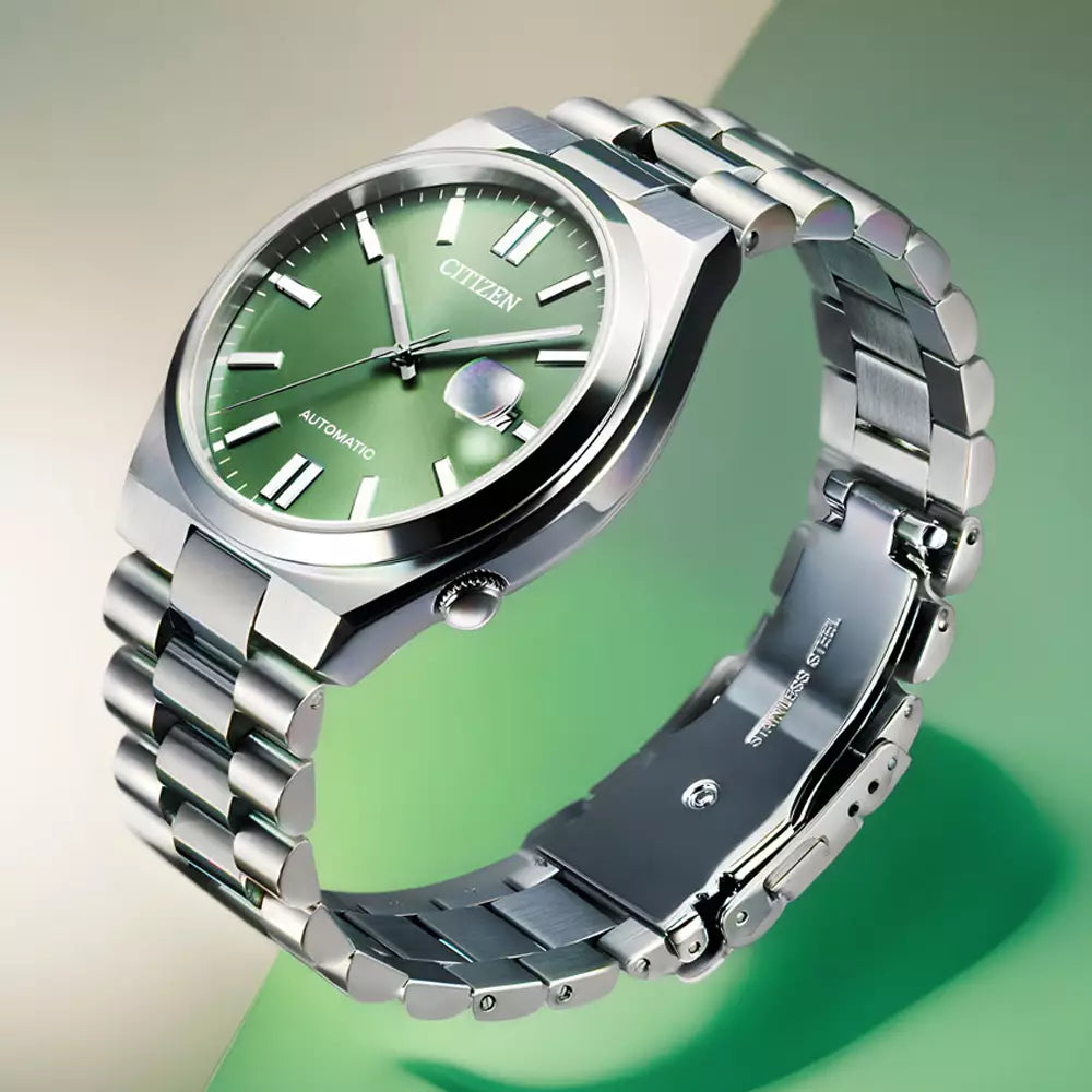 Un’introduzione che combina design e funzionalità essenziali. Il Citizen Tsuyosa NJ0158-89Z si distingue per l’esclusivo quadrante verde “Peaceful Green”, una tonalità sviluppata in collaborazione con Pantone, simbolo di tranquillità e connessione con la natura. La cassa da 40 mm in acciaio inox con finitura lucida si integra perfettamente con il bracciale coordinato, creando una silhouette contemporanea e raffinata. Il fondello trasparente e il movimento automatico completano l’equilibrio tra estetica e meccanica.