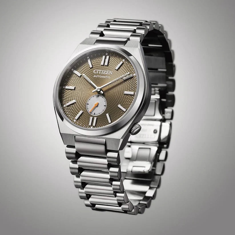 Un mix raffinato tra meccanica automatica e design moderno: il Citizen Tsuyosa NK5010-51X colpisce al primo sguardo con il suo quadrante verde oliva lavorato e la cassa in acciaio satinato da 40 mm. Il bracciale integrato dona continuità estetica e carattere deciso, mentre il movimento automatico garantisce precisione e autonomia per giorni.