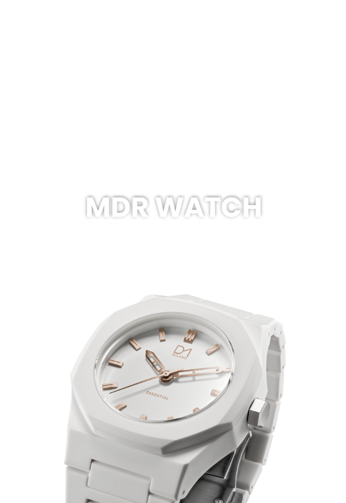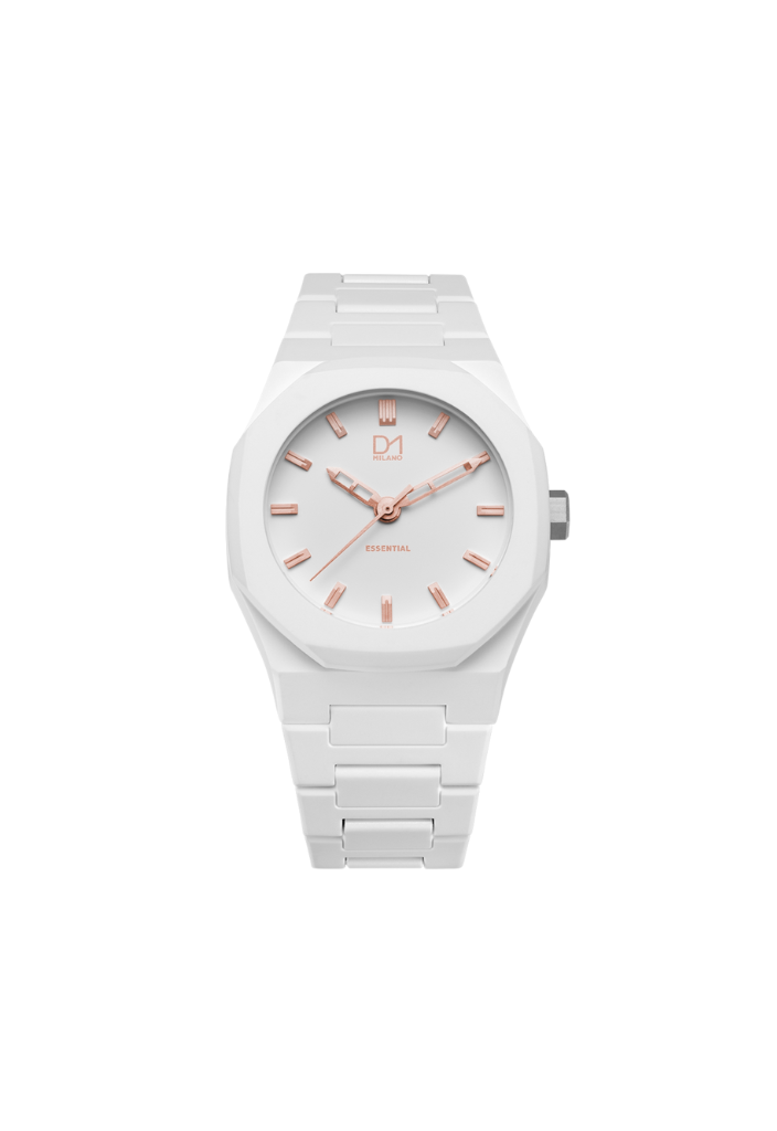 The D1 Milano A-ES06 is a watch that expresses minimalism and lightness with its total white design. The 40 mm polycarbonate case offers resistance and comfort, while the white dial, without frills, enhances the essential elegance of this model. The quartz movement ensures precision and reliability, while the strap, also in polycarbonate, guarantees lightness and practicality.