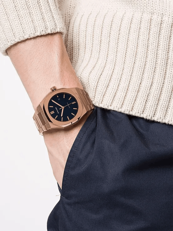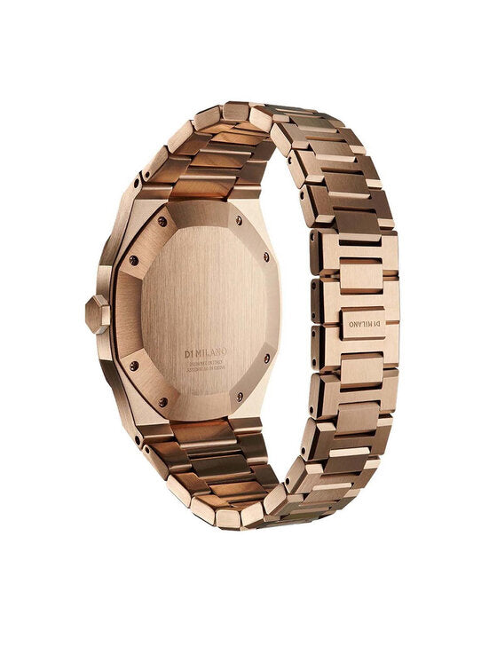 A perfect blend of modern Italian design and mechanical precision. The D1 Milano ATBJ03 stands out for its 41.5 mm octagonal rose gold-tone stainless steel case, which encloses a refined black dial with matching indexes and hands. The balance between strong lines and sophisticated details makes it ideal for any occasion.
