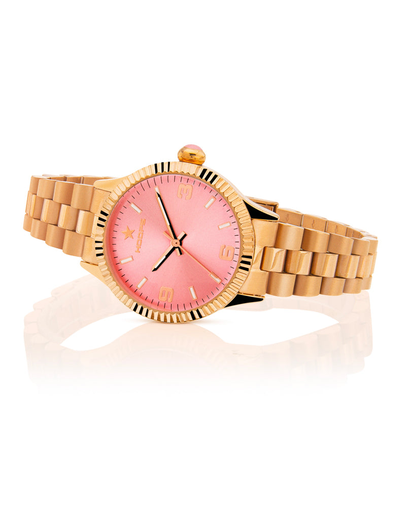 The Hoops 2618L-RG05 watch is the epitome of elegance and sophistication. With a rose gold case and strap, it offers a sophisticated and modern design, perfect for those looking for an accessory that stands out. The pink dial adds a delicate and feminine touch, with clearly visible indexes and hands for precise reading.