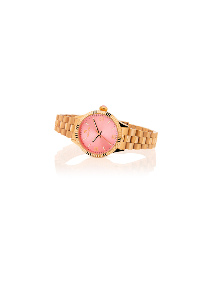 Pink dial: A delicate and feminine touch, with luminescent indexes and hands.