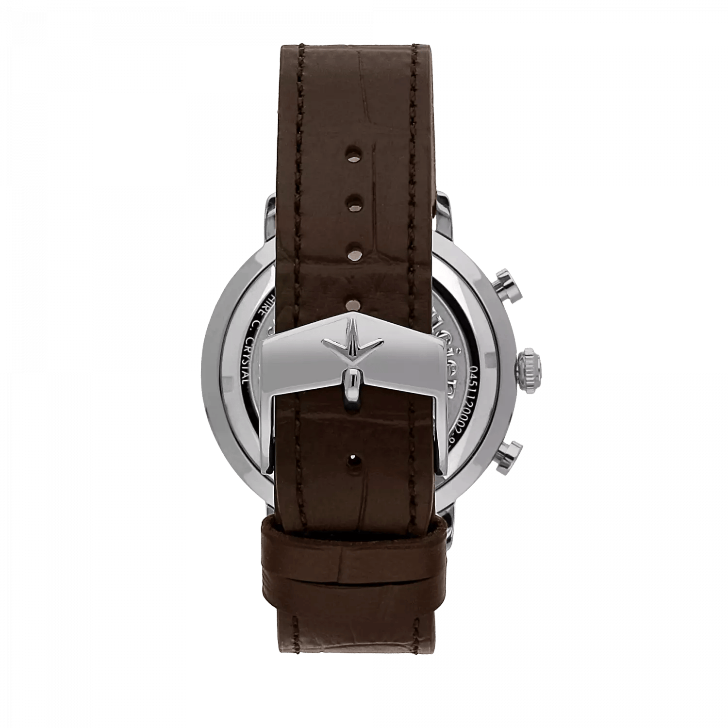 Classic elegance and functionality meet in a warm and refined design. The Lucien Rochat Garçon Chronograph features a 41 mm case in polished silver steel with brown details, combined with a brown genuine leather strap. The quartz movement with chronograph function offers precision and practicality, ideal for the man who likes to stand out with discretion.