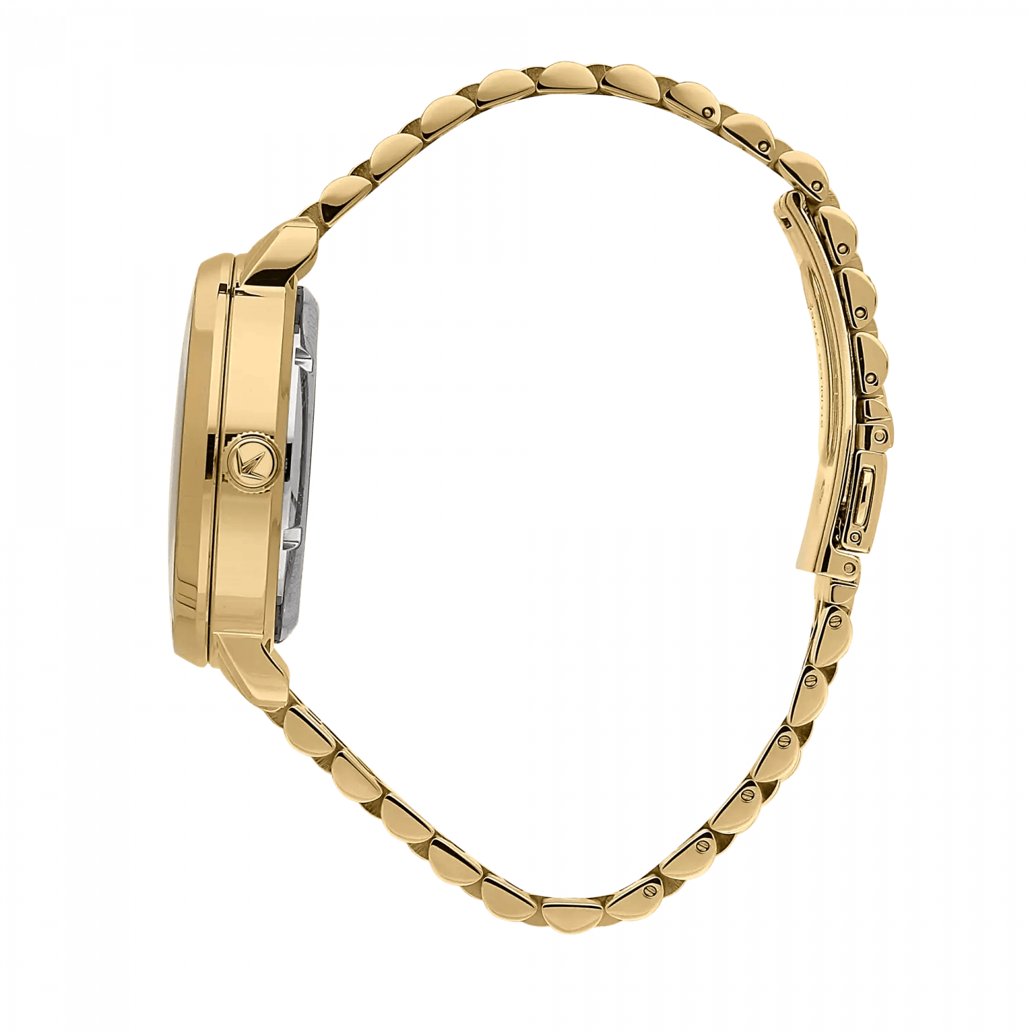 Gold metal bracelet: Comfort and style, with push-button deployment clasp.
