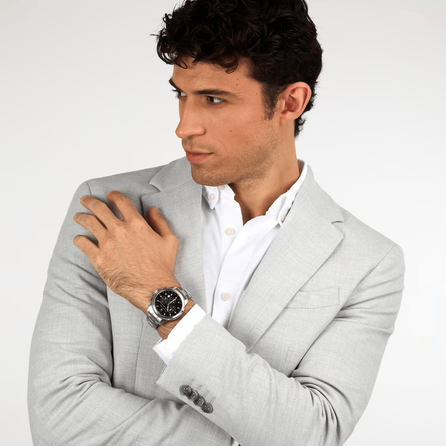 An introduction that combines essential design and functionality. The Maserati Successo R8873621001 stands out for its sturdy 52x44 mm satin-finished steel case, combined with a black sunray dial that enhances the sporty soul of the watch. The quartz movement ensures precision, while the steel bracelet with folding clasp completes a solid and dynamic look.
