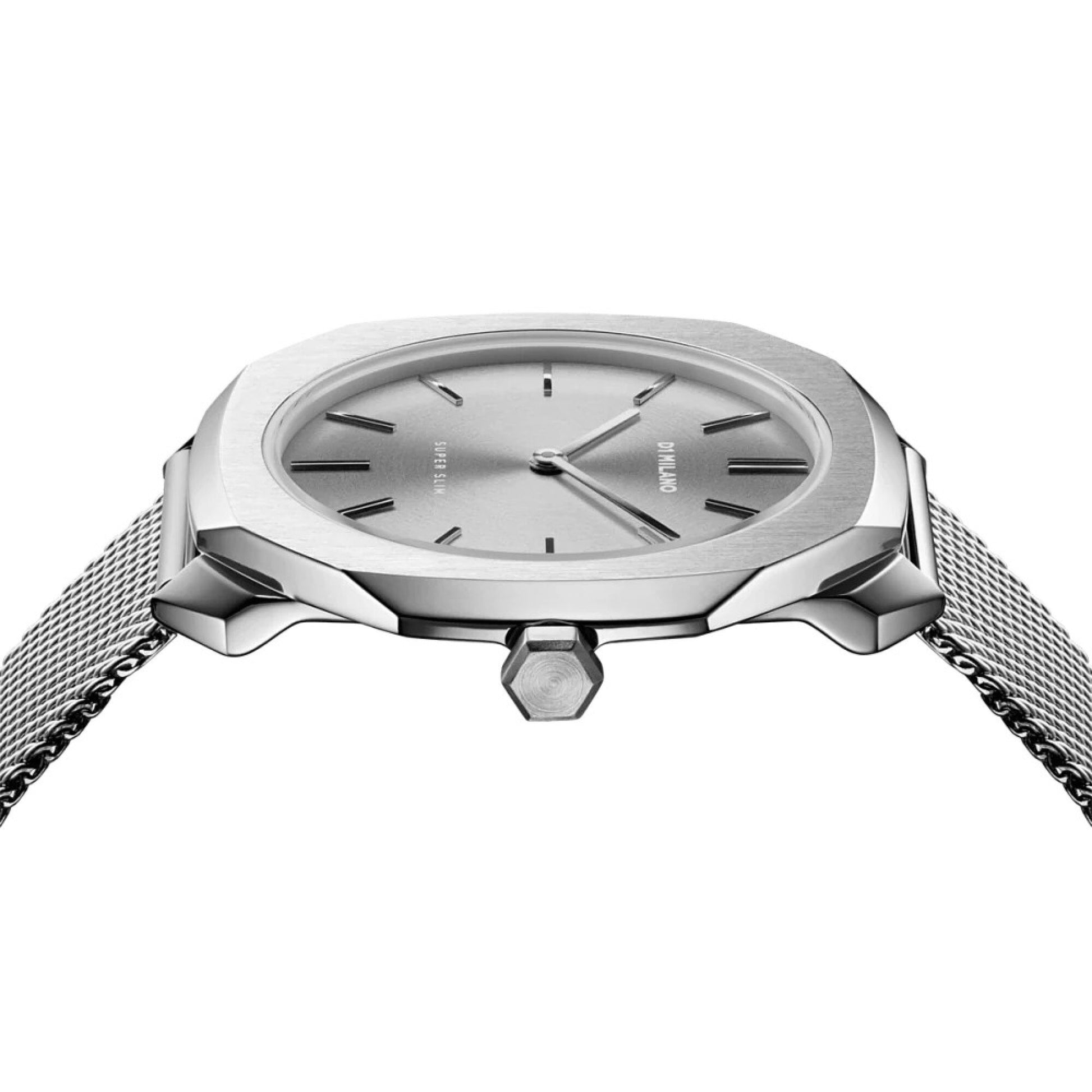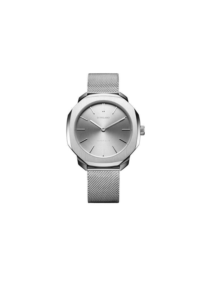 A watch that combines clean lines and high-quality materials. The D1 Milano SSML01 features a 36mm octagonal silver stainless steel case, paired with a silver dial with tone-on-tone indexes and hands. The silver Milanese mesh bracelet completes the aesthetic with a touch of modernity and sophistication.