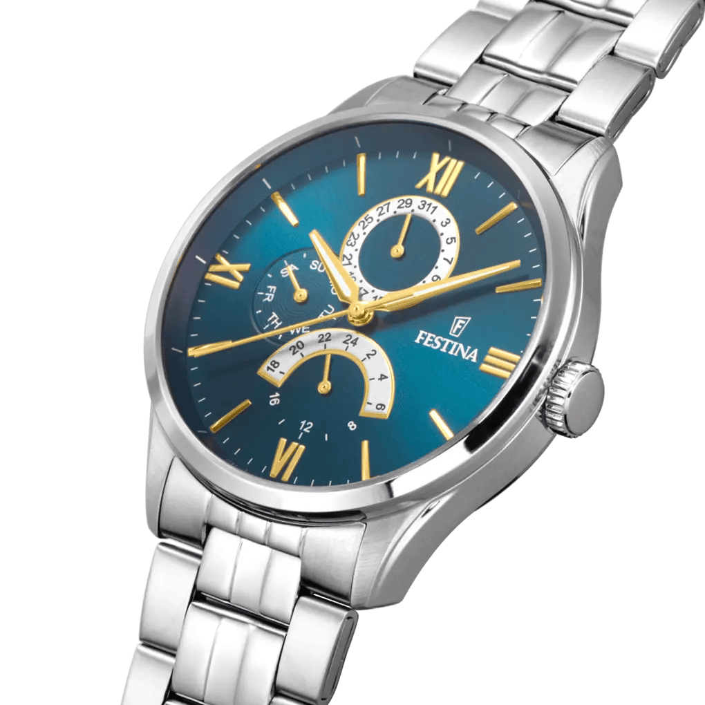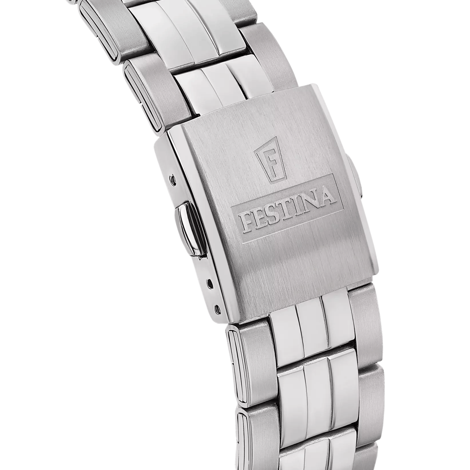An introduction that combines essential design and functionality. The Festina F16822/A stands out for its 43 mm round 316L stainless steel case , deep blue dial with six hands and reliable quartz movement. An ideal combination for those who love the balance between sporty looks and sophistication.