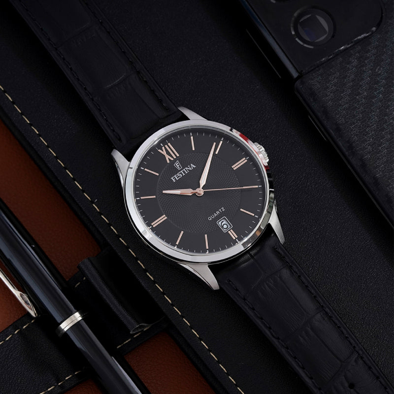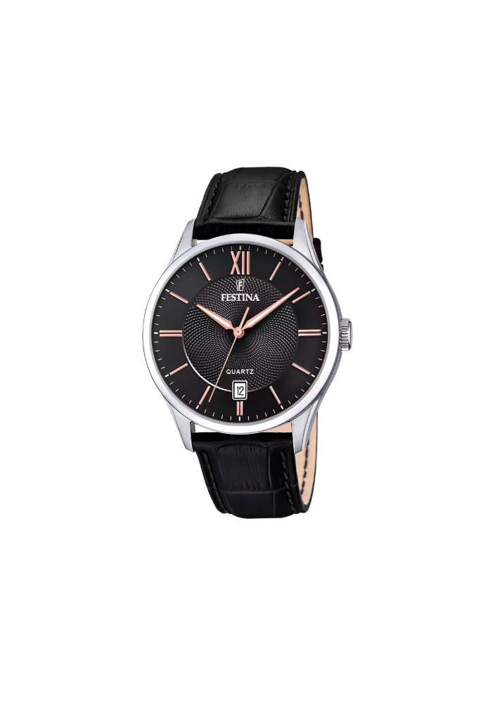 Festina F20 Black Watch Black Leather Strap – Elegance
