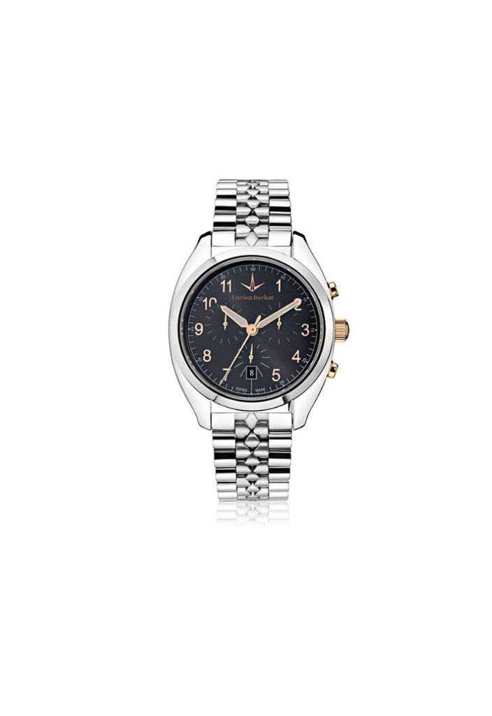 A watch with a strong and refined style. The Lucien Rochat R047 stands out for its 40 mm polished steel case, combined with a sophisticated gray dial that houses a chronograph with date. The steel bracelet completes the aesthetic with solidity and clean lines, perfect to accompany you on every occasion with class and functionality.
