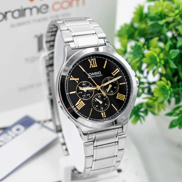 Un classico intramontabile che unisce eleganza e funzionalità. Il Casio MTP-1370D-2A2 si distingue per la sua cassa in acciaio da 39mm e il raffinato quadrante blu con finitura lucida, arricchito dalla funzione day-date a ore 3. Un segnatempo versatile, ideale sia per l’uso quotidiano che per le occasioni formali.